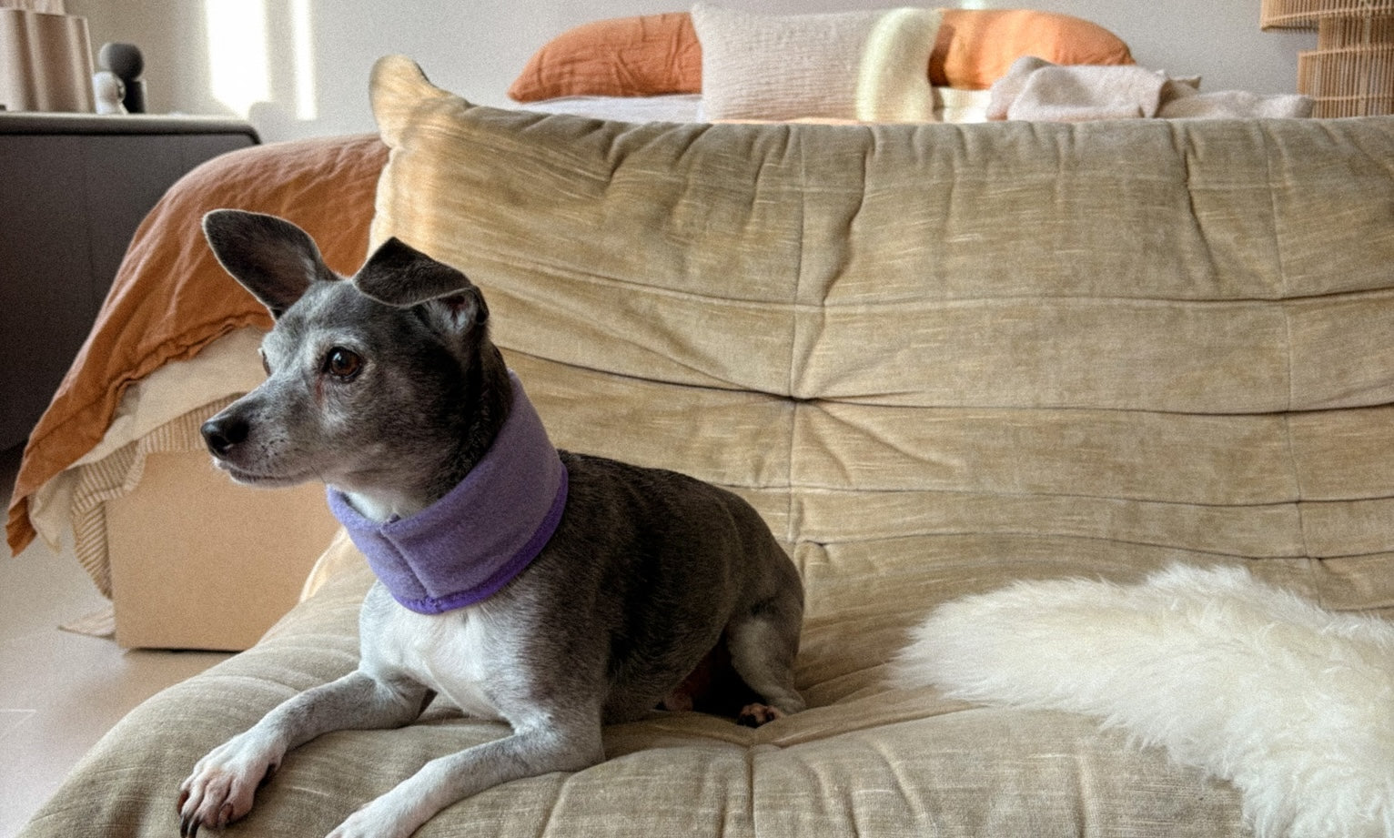 A little splash of cozy colour to mix and match with your rain vest, or rock solo when your pup doesn't want to mess with a whole sweater.